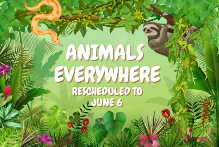Due to the anticipated rainfall and chance of thunderstorms on April 11, Animals Everywhere will be rescheduled to Saturday, June 6, held 10 AM - 1 PM. This new date will offer families the chance to enjoy Animals Everywhere, complete with sunny skies!